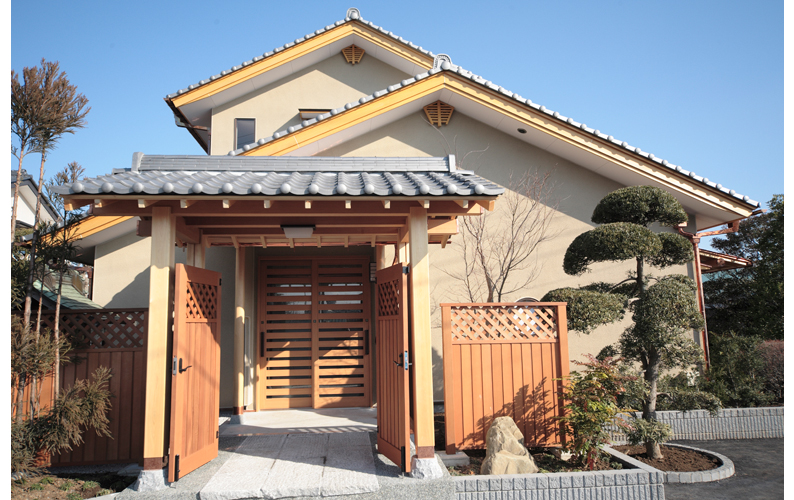 建物と門を一体化させて伝統的な和風建築を表現させました。